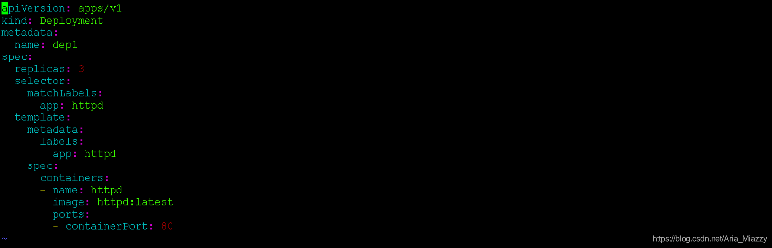 步骤2:打开部署文件后,请提及要部署的应用程序的所有规范。在这里,我试图部署一个httpd应用程序。