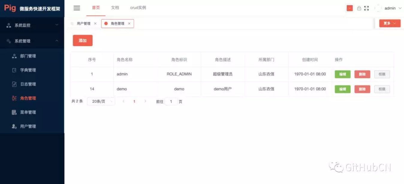 角色管理:角色菜单权限分配、设置角色按机构进行数据范围权限划分。