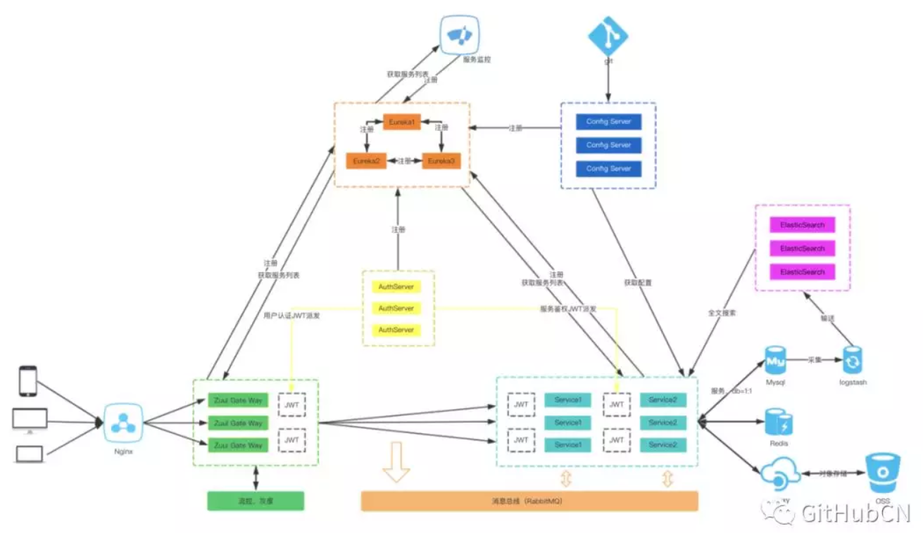 将服务保留的rest进行代理和网关控制,除了平常经常使用的node.js、nginx外,Spring Cloud系列的zuul和ribbon,可以帮我们进行正常的网关管控和负载均衡。其中扩展和借鉴国外项目的扩展基于JWT的Zuul限流插件,方面进行限流。