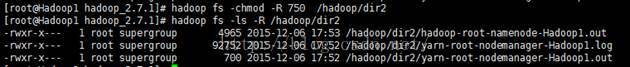 hadoop fs -chmod -R 750 /hadoop/dir2