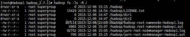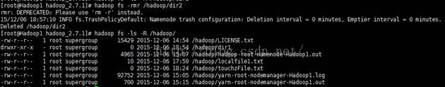 hadoop fs -rm/hadoop/dir1/hadoop-root-namenode-Hadoop1.log