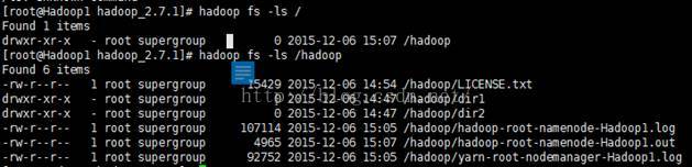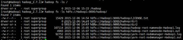 hadoop fs -ls hdfs://Hadoop1:9000/hadoop/