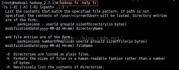 hadoop fs -help ls