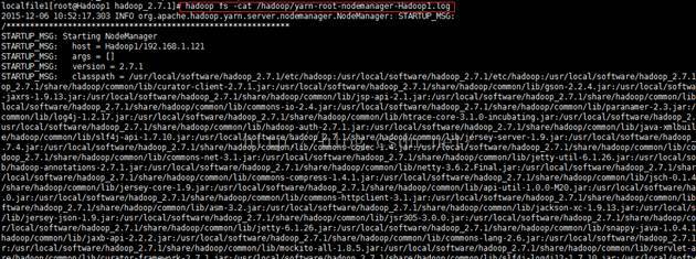 hadoop fs -cat/hadoop/yarn-root-nodemanager-Hadoop1.log
