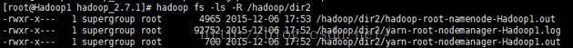 hadoop fs -cp/hadoop/yarn-root-nodemanager-Hadoop1.log /hadoop/yarn-root-nodemanager-Hadoop1.out/hadoop/dir2