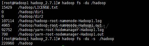 hadoop fs –du -s /hadoop