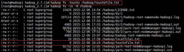 hadoop fs -touchz /hadoop/touchzFile.txt