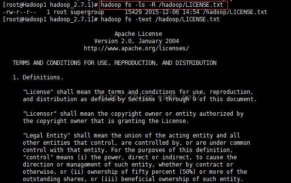 hadoop fs -text /hadoop/LICENSE.txt