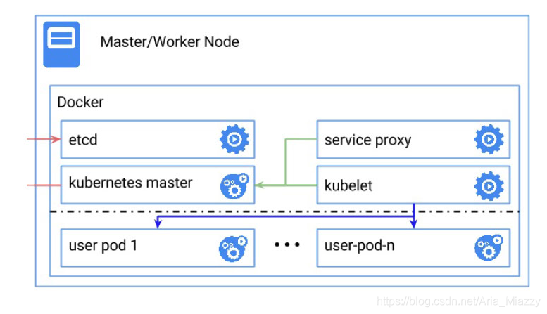 上面的各种容器都是运行在 kubelet 程序的管理下,它会保证容器一直运行,甚至容器意外退出时也不例外。所以,如果想关闭集群,你需要首先关闭 kubelet 容器,再关闭其他。