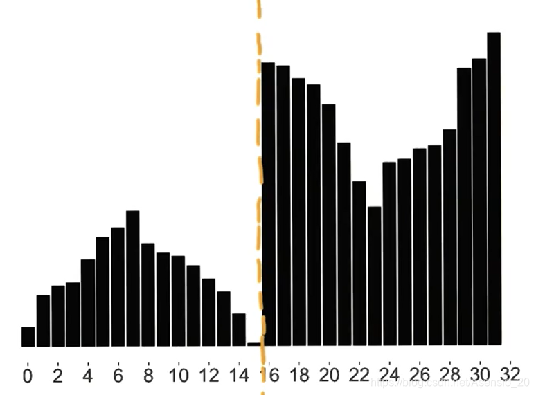 首先来介绍一下什么叫做双调序列,我认为,这个序列是一个先增再减的序列(或者先减再增),判断方法是这样滴,首先,将序列第一个元素和最后一个元素连一条线,构成一个环,然后计算每条线的增减性,如果是下面这样的序列,就可以叫做Bitonic Sequences,在算法中,通常要求长度是2**k