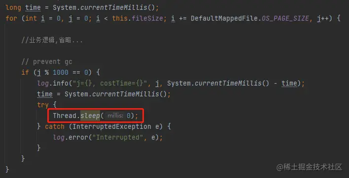 Thread.sleep(0) 这个代码看起来莫名其妙,但是我是不是可以大胆的猜测一下:故意写这个代码的人,是不是为了在这里放置一个 Safepoint 呢,以达到避免 GC 线程长时间等待,从而加长 stop the world 的时间的目的?