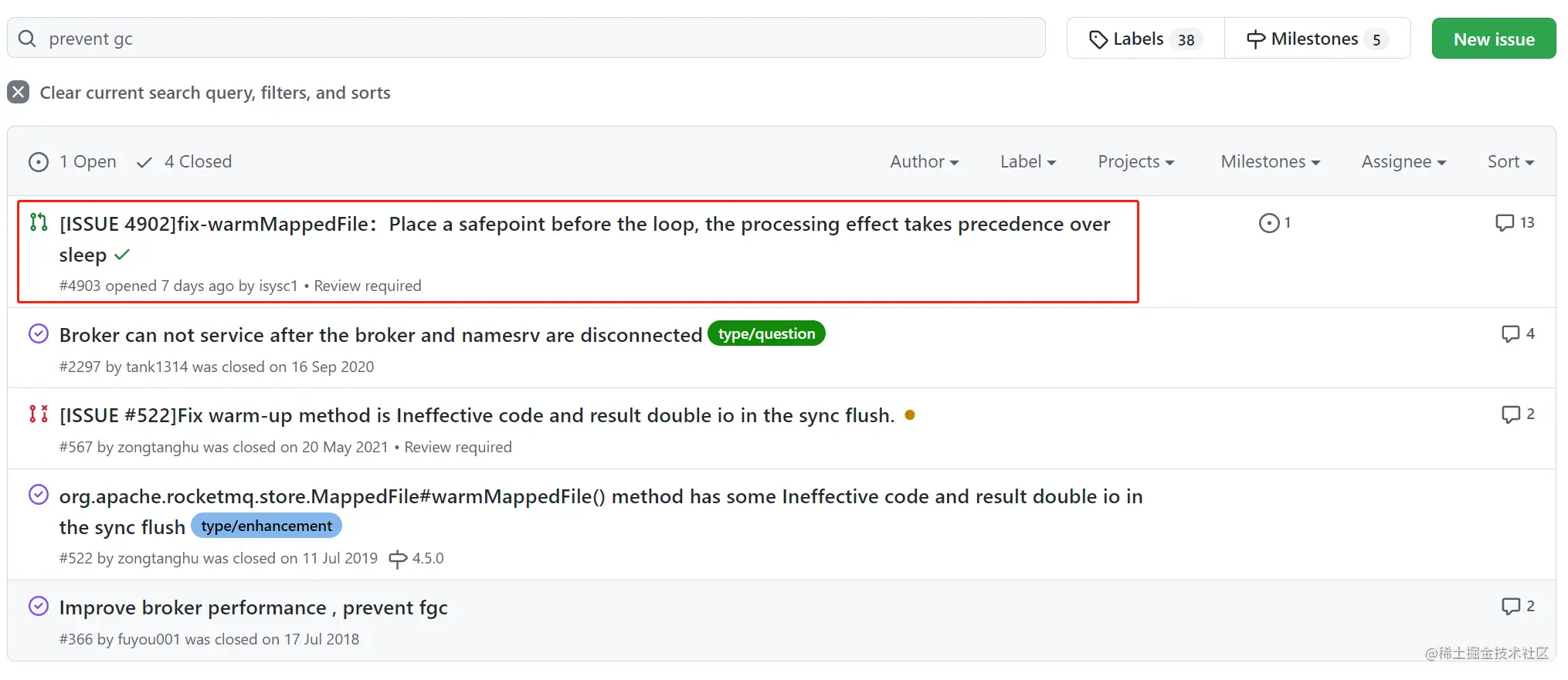 于是我把目光转向了 github 的 issue,拿着关键词 prevent gc 搜索了一番。