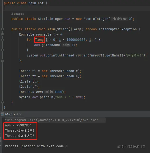 按照代码来看,主线程休眠 1000ms 后就会输出结果,但是实际情况却是主线程一直在等待 t1,t2 执行结束才继续执行。