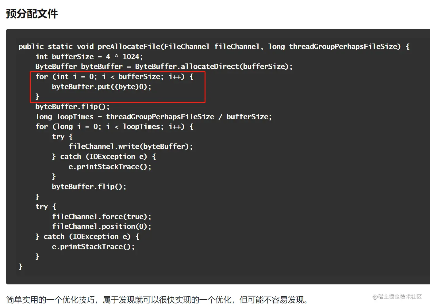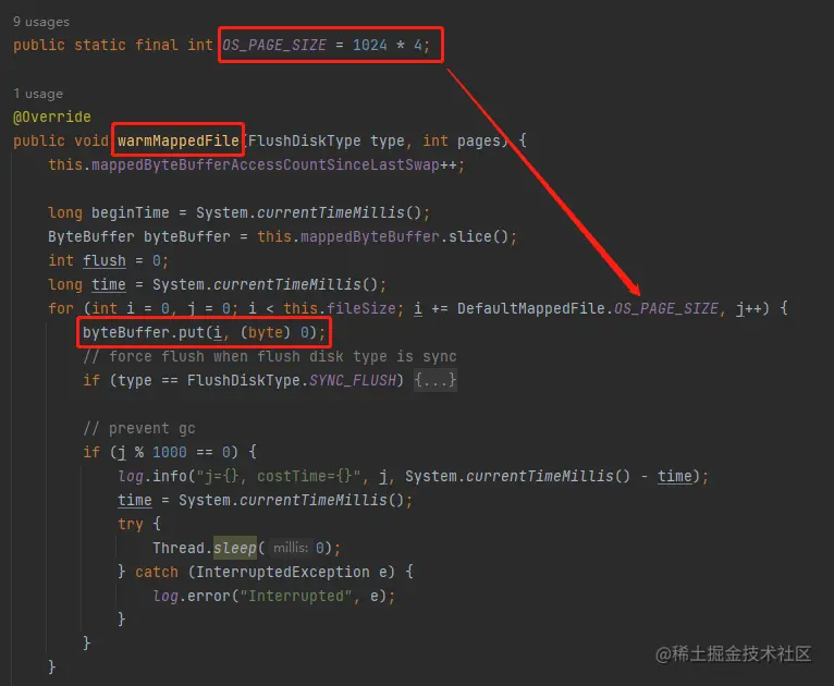 预热文件,按照 4K 的大小往 byteBuffer 放 0,对文件进行预热。