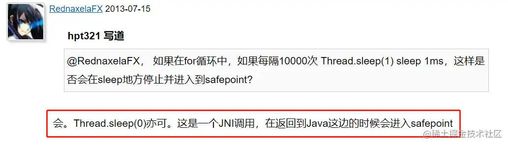 所以,我接下来只需要找到 sleep 会进入 Safepoint 的证据,就能证明我的猜想。