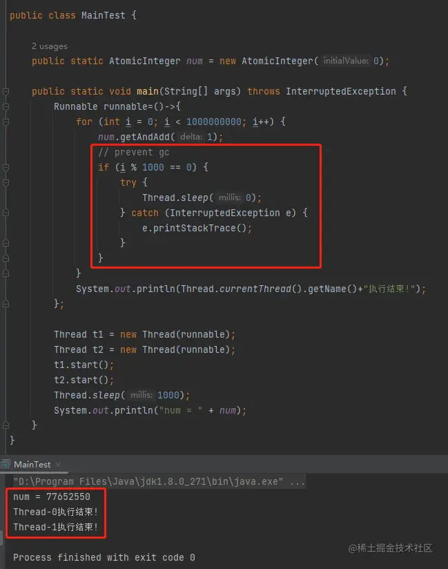 这里就直接点名道姓的指出了:Thread.sleep(0).