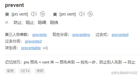 prevent,这个单词如果不认识的同学记一下,考试肯定要考的: