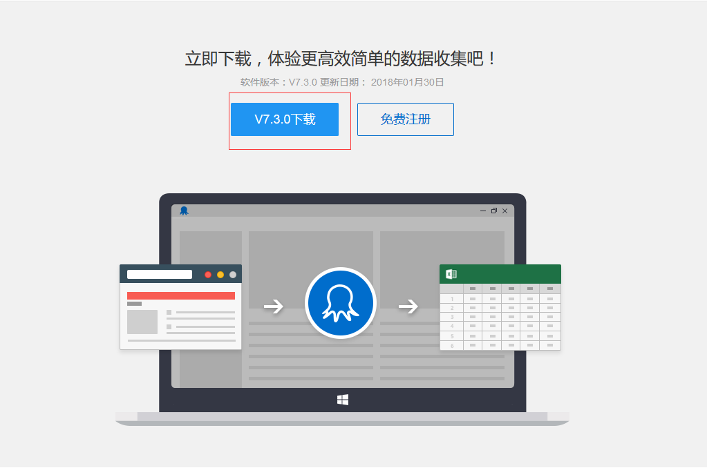 1、打开http://www.bazhuayu.com/download,即八爪鱼软件官方下载页面,点击图中的下载按钮。