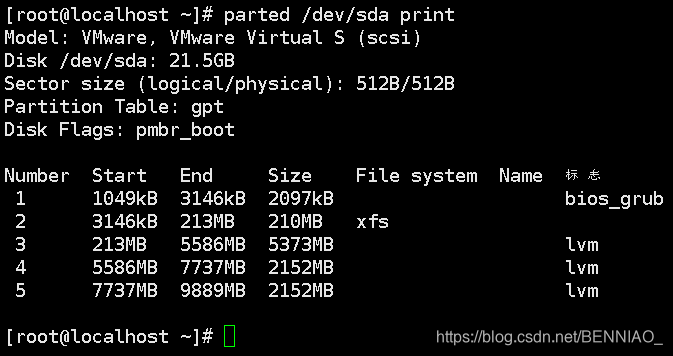 第二部:# parted /dev/sda print 或者 # parted 然后按照输入。(利用parted命令查看系统格式,是GPT格式还是MBR格式)
