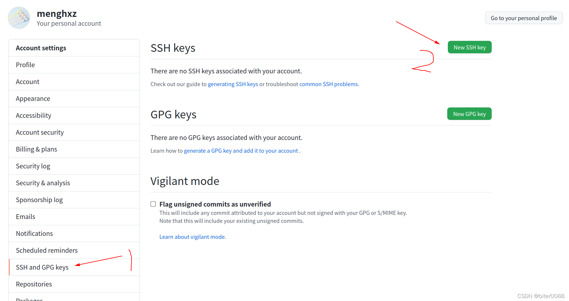 箭头处起个名字,将“2”生成的key粘贴过来;并点击add ssh key