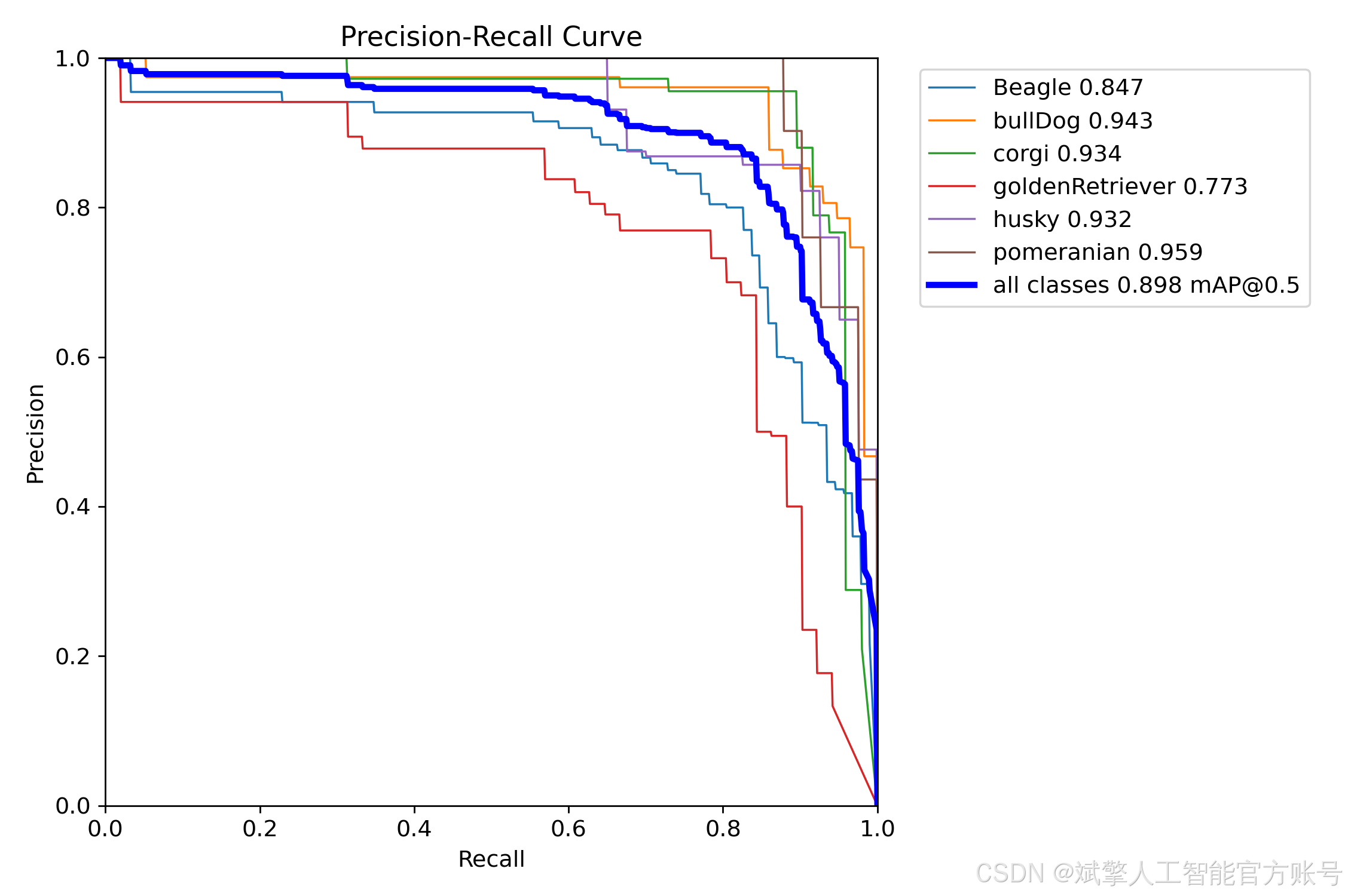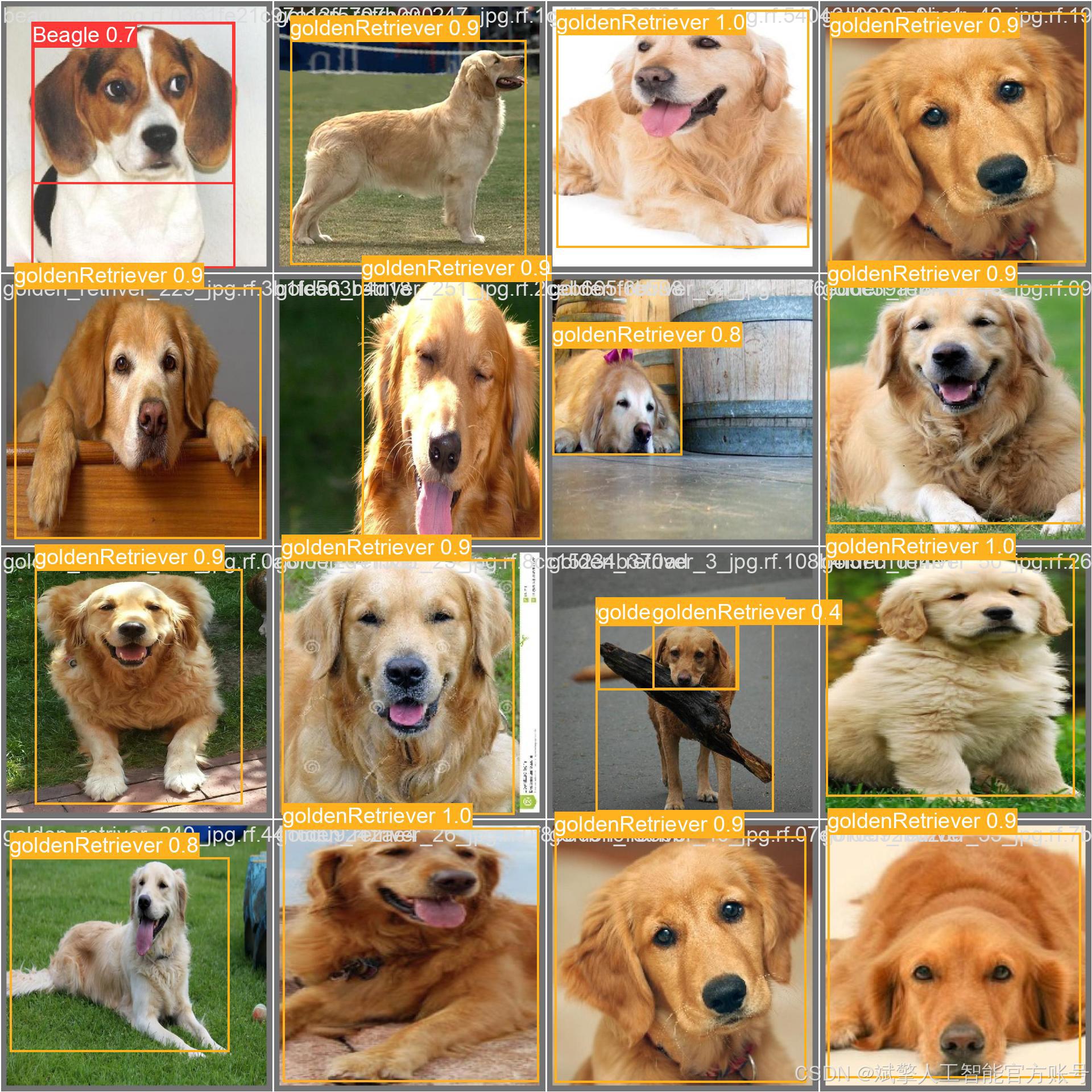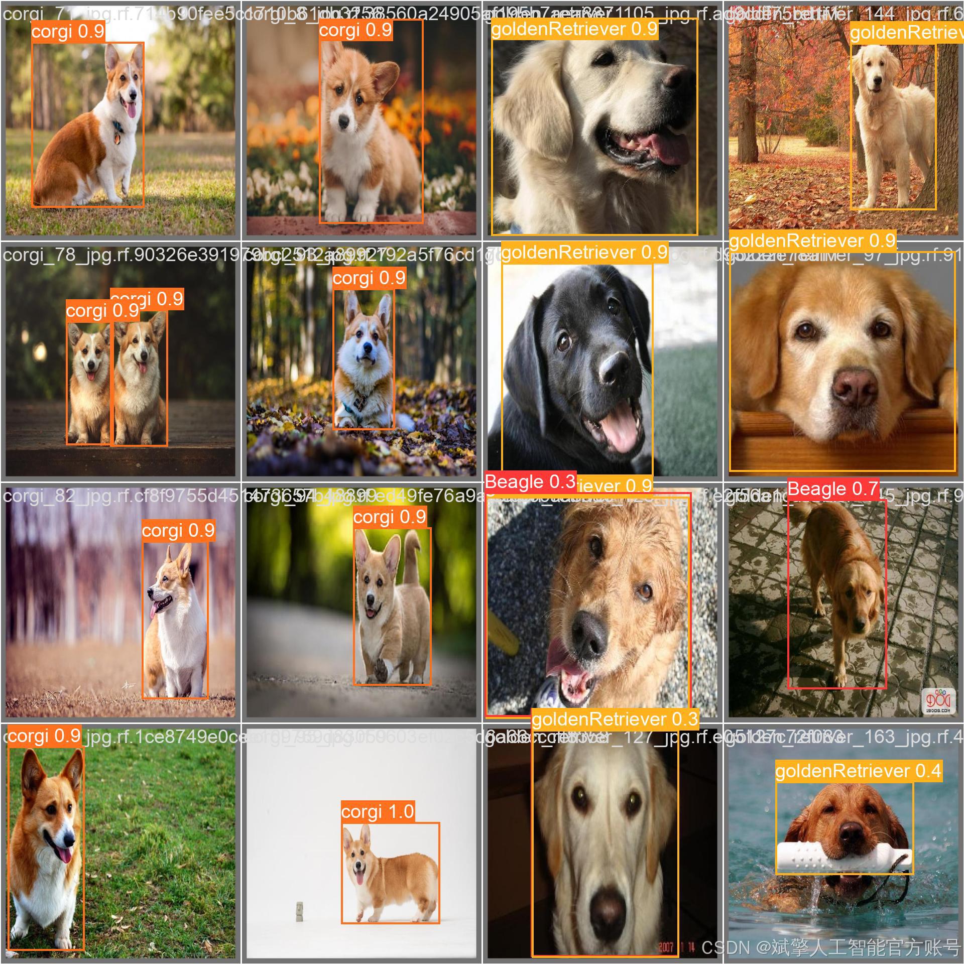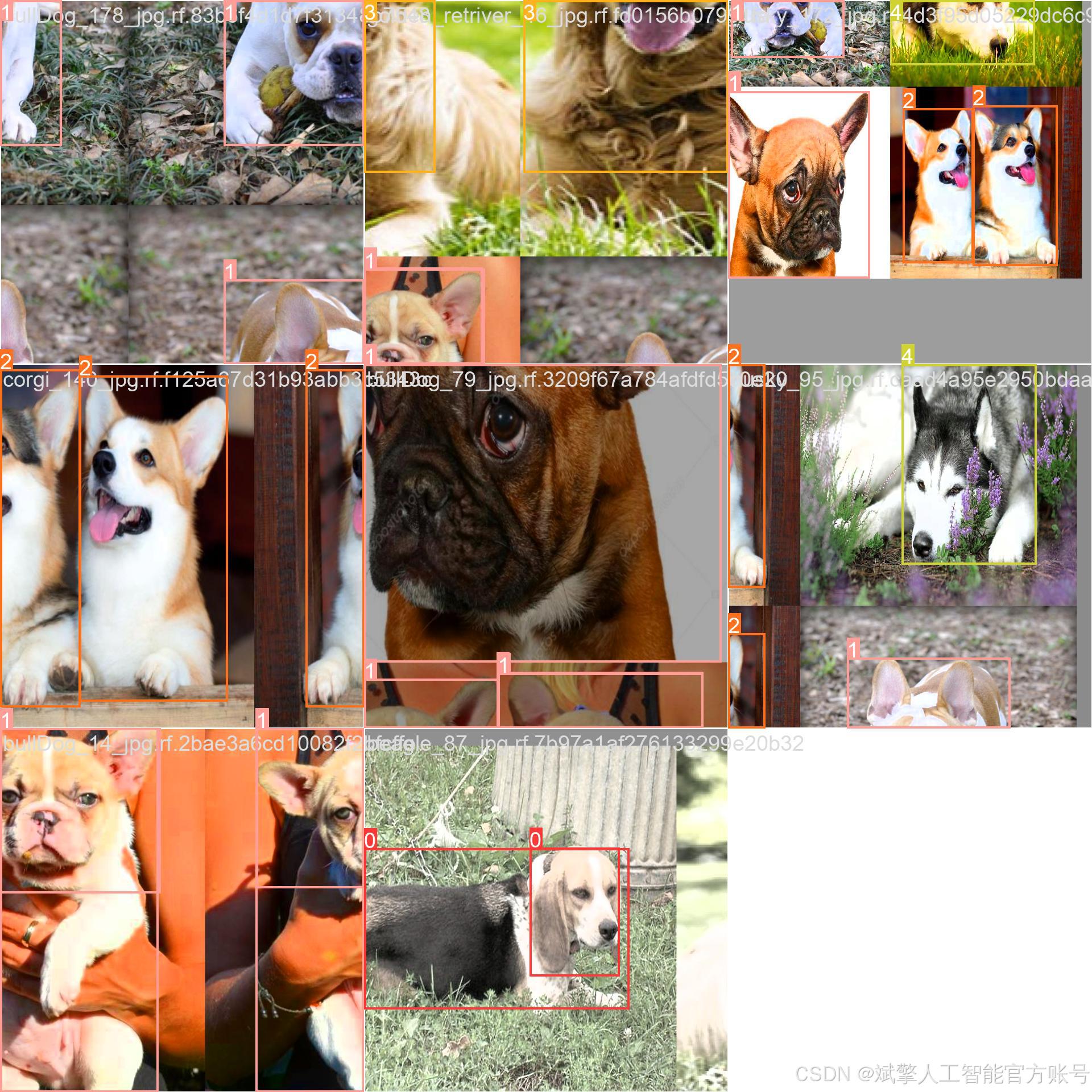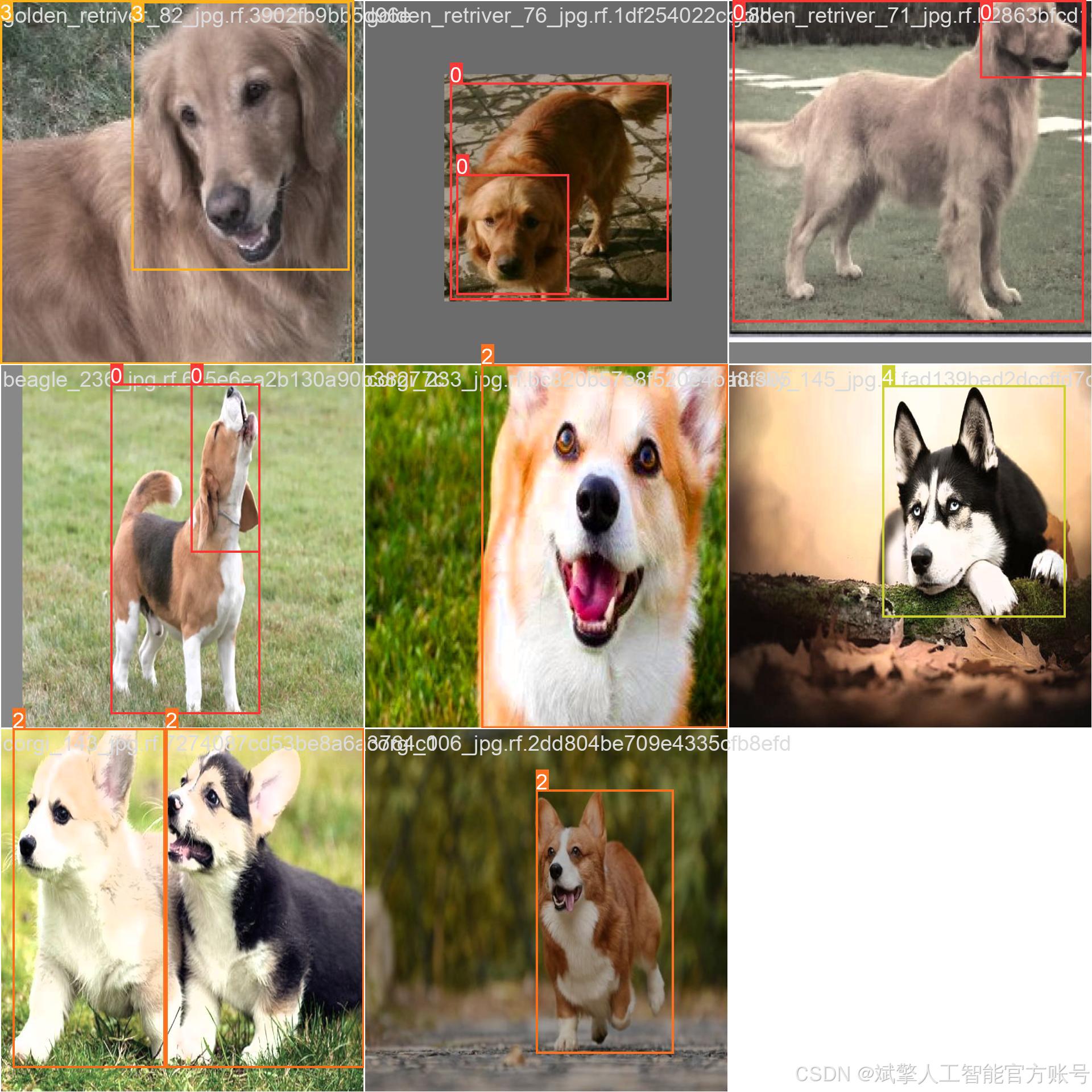 本项目基于YOLOv8目标检测算法开发了一套犬种识别系统,专门用于六种常见犬种的实时检测与分类。模型配置为nc=6,对应识别目标包括:比格犬(Beagle)、斗牛犬(bullDog)、柯基犬(corgi)、金毛寻回犬(goldenRetriever)、哈士奇(husky)和博美犬(pomeranian)。系统通过端到端的训练实现了高效的多目标检测能力,能够准确框选图像中的犬只并输出对应的品种标签,在移动端和嵌入式设备上具有潜在的应用价值。