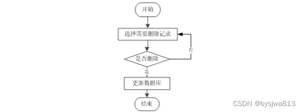 管理员可以对商品调拨等进行信息的删除,对要删除的信息进行选中后,点击删除按钮,系统会询问是否确定,若点击确定,则系统会删除掉选中的信息,并在数据库内对信息进行删除,删除信息流程图如图3-6所示。