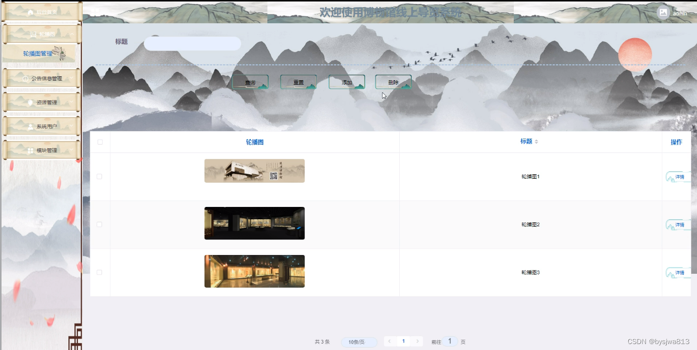 轮播图管理,通过获取索引、轮播图、标题等信息进行修改或删除等操作,如图5-11所示。