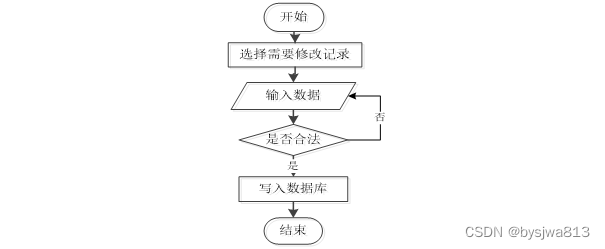 管理员可以对商品出货信息等进行信息的修改,用户也可以对自己权限内的信息进行修改,首先进入修改信息界面,输入修改信息数据,系统进行数据的判断验证,修改信息合法则修改成功,信息更新至数据库,信息不合法则修改失败,重新输入。修改信息流程图如图3-5所示。