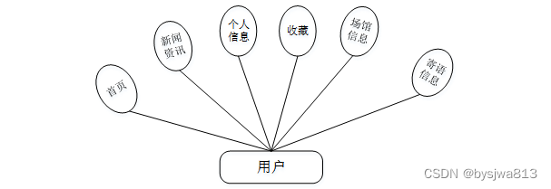app端实现功能包括首页、新闻资讯、我的(个人信息、场馆预约、寄语信息、收藏)等功能。app端用例如图3-8所示。