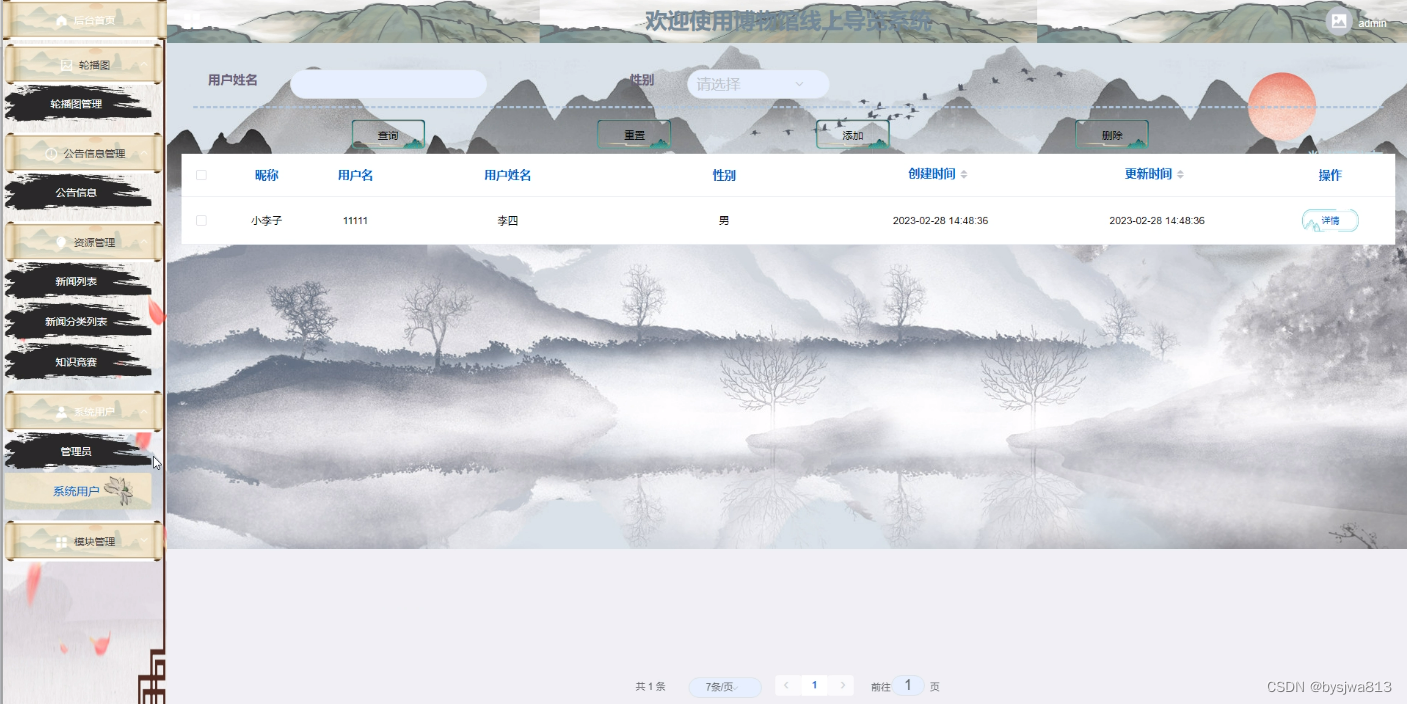 随着计算机网络的不断渗透,人们的生活与工作、学习的方式也在慢慢发生变化。传统的博物馆线上导览相关信息管理方式一般都采取人工的方式,信息的获取、整理、修改、存储等工作还停留在人工阶段。这种方式一方面需要花费大量的人力、物力和金钱,交互起来比较困难,而且会浪费时间;另一方面对用户等信息的管理,特别是随着用户数量的递增,查询、修改起来特别困难;最后由于用户等其他信息的不断增加,信息的存储也成为了难题。