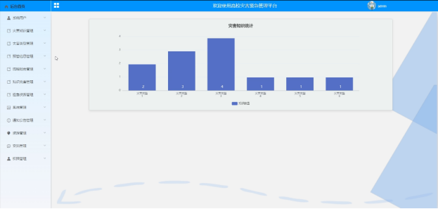 - 后台首页:可查看灾害知识统计信息数据分析。
