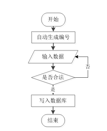 用户成功登入系统后就能够实现增加数据的操作,增加数据的编号是特定的,系统生成,用户不能随意填写,除了编号以外,其他增加信息用户自己填写,填写后的信息经过系统验证,验证合法通过就显示增加数据成功了,相反的话,就没有增加成功,图2-4显示的就是在增加数据时的流程。