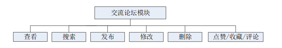 高校灾害紧急管理平台是一个交流性质的公开平台,用户在平台的交流论坛可以发布帖子并进行点赞、收藏和评论,增加用户之间的互动性。具体的结构图如下: