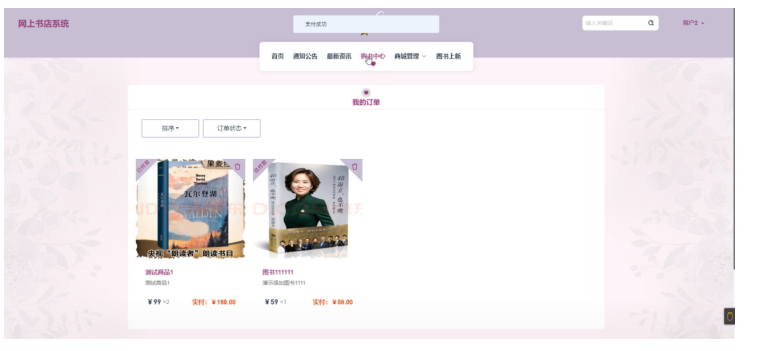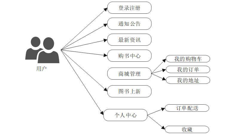 System users are divided into two categories: regular users and administrators, each with different operational permissions and functional modules. Ordinary users can obtain the latest notifications, announcements, and information through the system homepage; In the book purchasing center, users can browse and purchase books, and support functions such as shopping cart management, order management, and address management; The new module on books recommends the latest books to users; The personal center module provides order delivery status viewing and collection management functions, making it convenient for users to track and manage their personal books. Administrators have more management privileges and can access the system overview and view important notifications through the homepage; The system user management module allows administrators to manage all platform users, including other administrators and regular registered users; Through book type management and new book listing modules, administrators can easily manage book classification and list new books; The system management module includes the management of carousel images to optimize the display effect of the homepage; The notification announcement and resource management module enables administrators to publish and manage the latest information and announcement content; The mall management module covers the operation of the book center, classification list, order management, and order delivery, ensuring the smooth operation of the online bookstore.