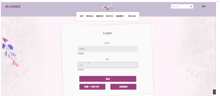 - 首页信息:系统首页呈现了丰富的内容,包括最新的最新资讯、通知公告、购书中心、商城管理(我的购物车、我的订单、我的地址)图书上新