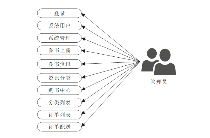 系统用户分为普通用户和管理员两类,各自拥有不同的操作权限和功能模块。普通用户可以通过系统首页获取最新的通知公告和资讯信息;在购书中心,用户能够浏览并购买图书,支持购物车管理、订单管理和地址管理等功能;图书上新模块向用户推荐最新的书籍;个人中心模块提供订单配送状态查看和收藏管理功能,方便用户跟踪和管理个人书籍。管理员则拥有更多的管理权限,可以通过首页了解系统概况并查看重要通知;系统用户管理模块允许管理员管理所有平台用户,包括其他管理员和普通注册用户;通过图书类型管理和图书上新模块,管理员可以方便地管理书籍分类和上架新书;系统管理模块包括轮播图的管理,以优化首页展示效果;通知公告和资源管理模块使管理员能够发布和管理最新的资讯和公告内容;商城管理模块涵盖了购书中心的运行、分类列表、订单管理和订单配送等内容,确保网上书店的平稳运营。