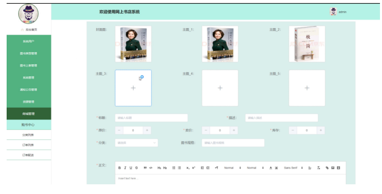 1.购书中心管理:管理员可以在购书中心管理模块中,管理所有上架书籍的信息,调整书籍的展示顺序、价格及库存,确保购书中心的内容更新和准确。