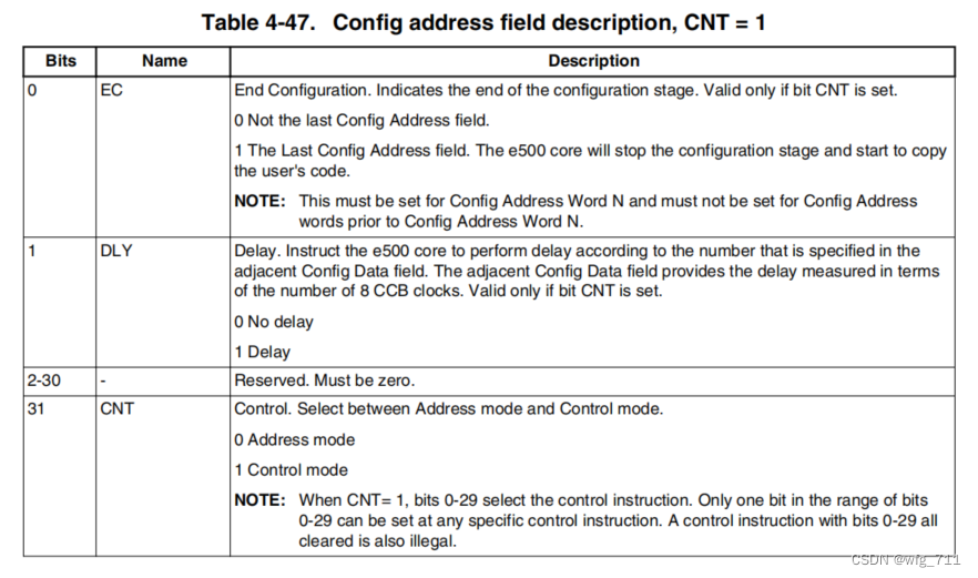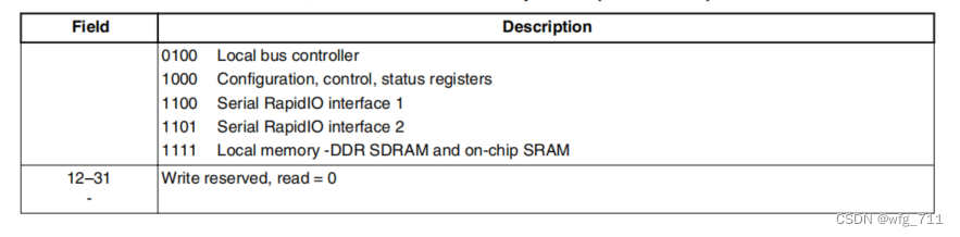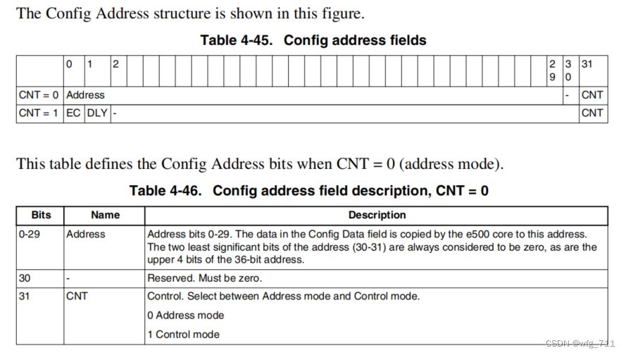 0~29地址位,配置数据字段中的数据由e500核心复制到这个地址。地址的两个最小有效位(30-31)总是被认为是零,36位地址的上4位也是零。