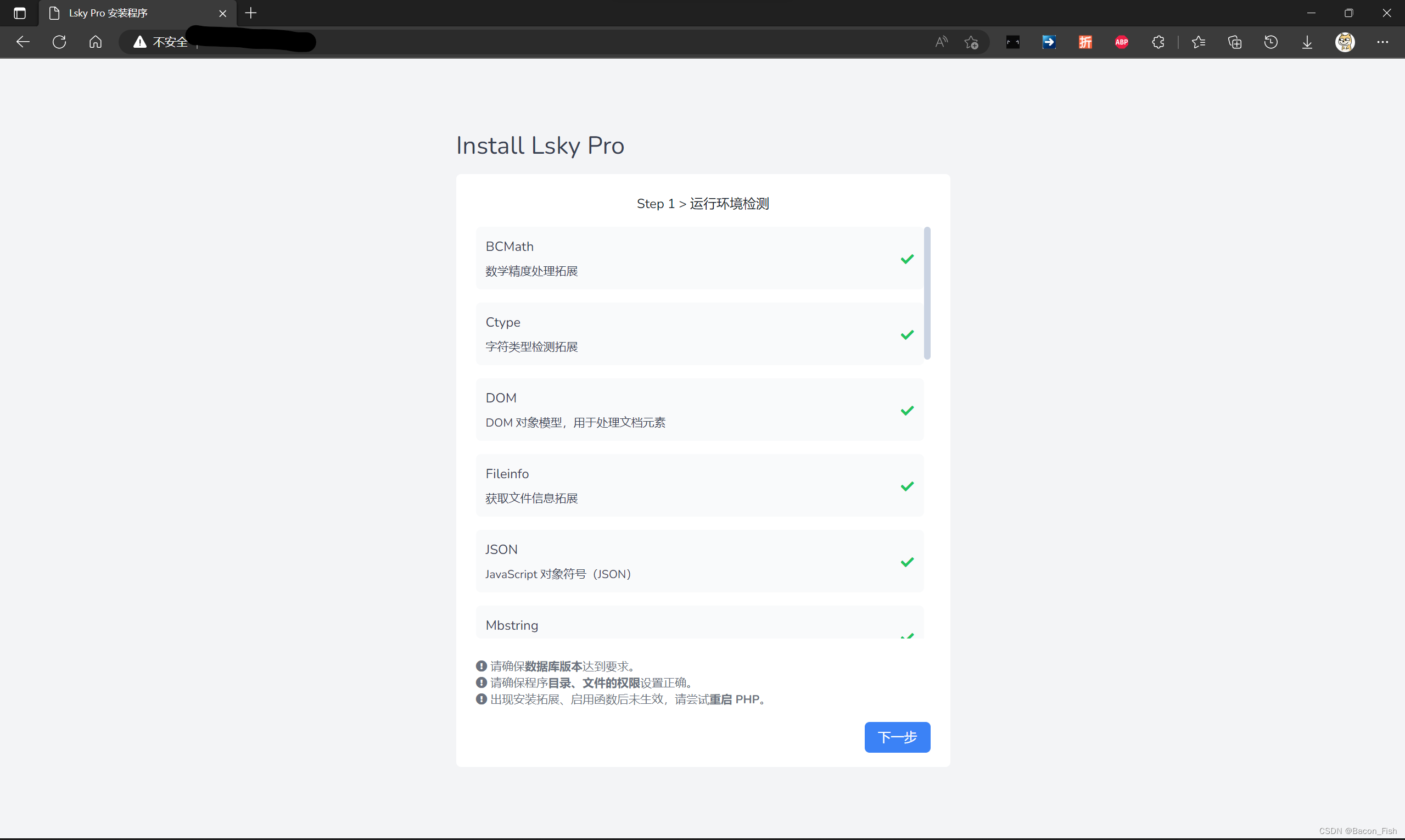 至此,Lsky Pro的系统环境准备已经全部完成,下面我们将打开浏览器进行正式安装。