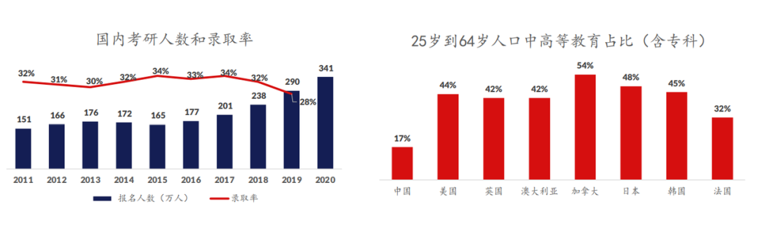 中国的发展需要大量的人才供给,即使要达到德国、韩国的人才水平,也要在现有的研究生招生规模下,增加420万研究生: