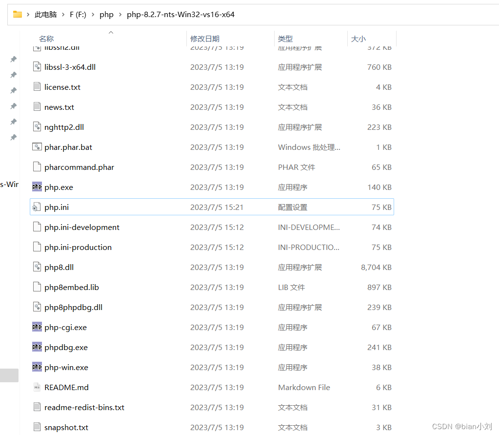 找的你的php环境位置 我的是:F:\php\php-8.2.7-nts-Win32-vs16-x64