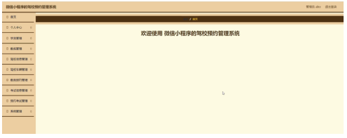 管理员登录系统后,可以对首页、个人中心、学员管理、教练管理、驾校信息管理、驾校车辆管理、教练预约管理、考试信息管理、预约考试管理、系统管理等功能进行相应操作,如图5-10所示。