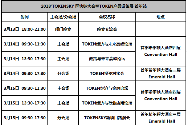 为全面深入研究和探讨TOKEN经济对于世界的正向改变作用,2018 TOKENSKY区块链大会暨TOKEN产品及设备展,将于2018年3月在韩国首尔召开。据悉,大会将围绕“TOKEN 改变世界”这一主题,展开为期2天的深入探讨和展示。
