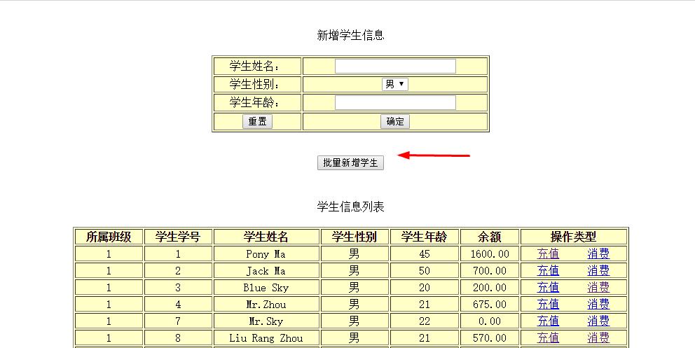 1、修改新增学生页面,增加批量新增学生的按钮;点击按钮跳转到批量新增学生页面;