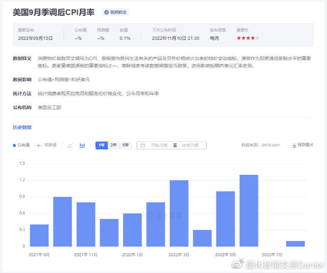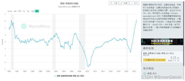 尤其是目前从房屋的价格传递到房租上还有着很长的时间。而房租更加的头疼的是八月份的房租走势已经突破了自1990年以来的房租历史最高点,这就意味着通胀的高居不下。所以9月27日的这个数据也许不会对市场造成太大的变化,但是对于考虑抄底或者卖出风险资产的投资者来说会是一个不错的预警时间。