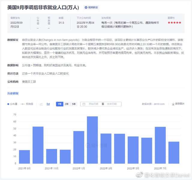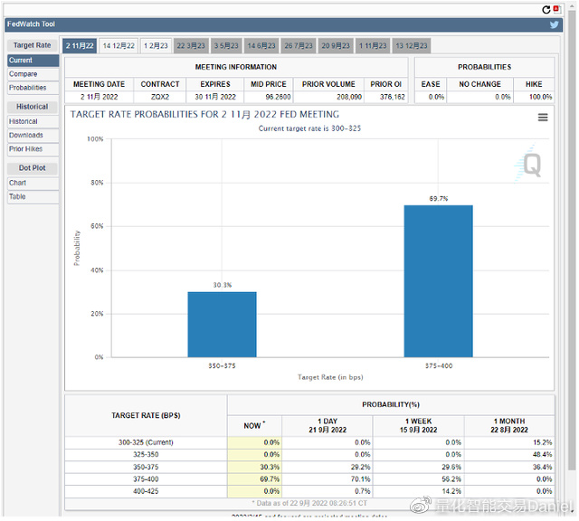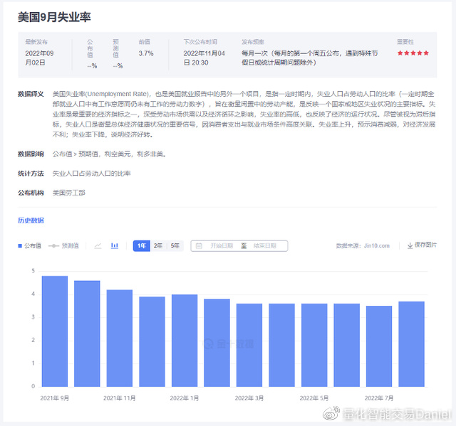 虽然已经有了上调失业人数的准备,但在2022年美联储对于失业的控制还是要保持在4%以内,因此10月7日会公布的9月失业率以及9月的非农数据就是决定了美联储在11月3日加息的上限考量,也就是说在CPI等同的情况下,失业率越低,非农的数据越强,美联储在11月会选择加息75个基点的可能性就越大。