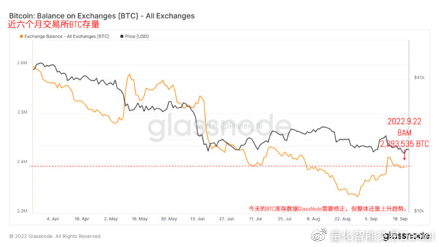 而从交易所的存量情况来看,在加息的重点时段冲击下BTC虽然价格比较坚硬,但库存量却是出现了持续上升的状态,这代表了BTC的购买情绪出现了低潮,或者是准备离场的抛压过多。而ETH虽然价格的损失较大,汇率会被打落到0.07下方,但交易所的存量确实出现了较大的减持,对于未来的走势能有些许帮助。