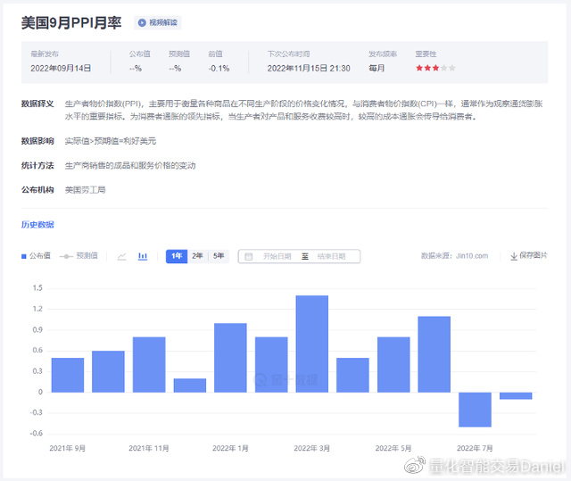 然后就是10月12日公布的PPI数据,这个数据可以作为CPI数据的前导,如果PPI的数据出现了较大的下降,则对于生产商销售和服务对应的CPI有减弱的帮助,甚至也可以作为食品和新车价格判断的标准,而食品是仅次于住房在CPI中占据最大的比例。该数据的结果会是第二次决定我建仓份额的预期。
