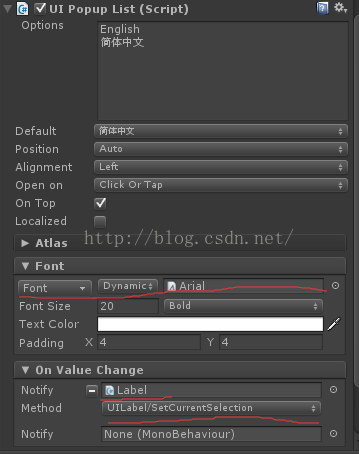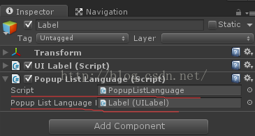 public UILabel PopupListLanguageLabel;这个变量,选择Popup List Language为这个Label对象