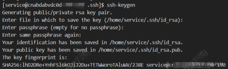 2.用service账号登录server2,切到/home/service目录,看.ssh目录是否存在(如果不存在就创建),